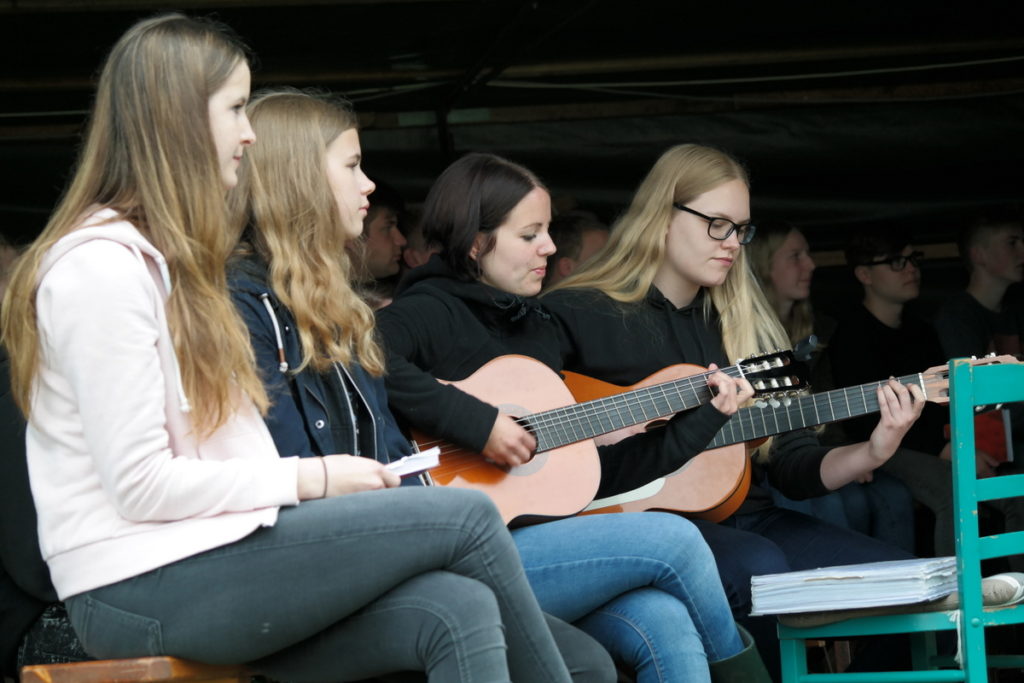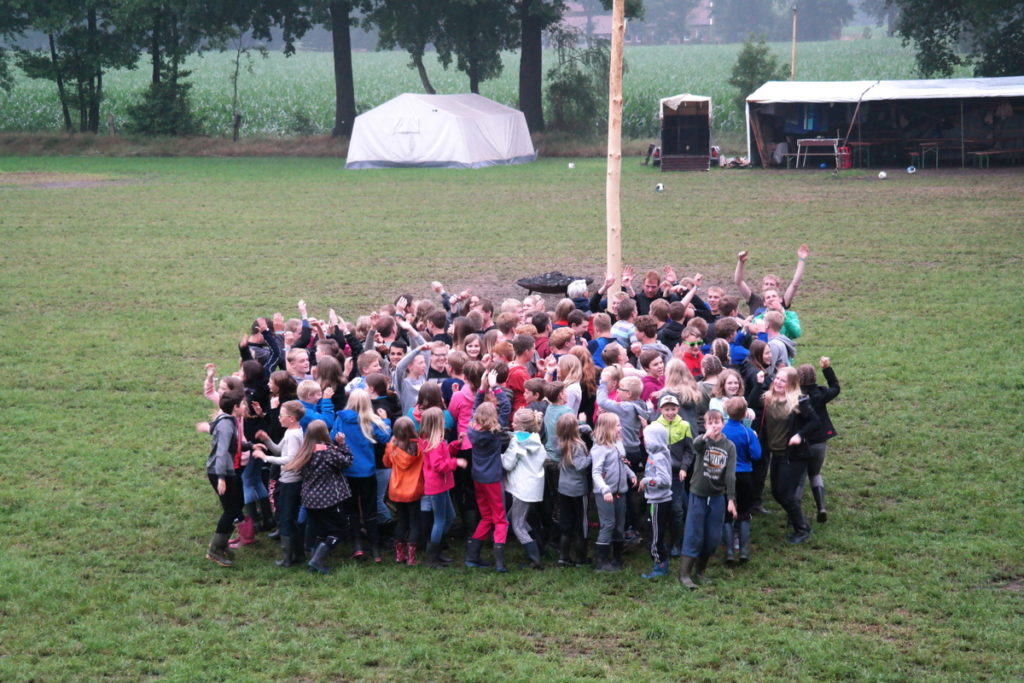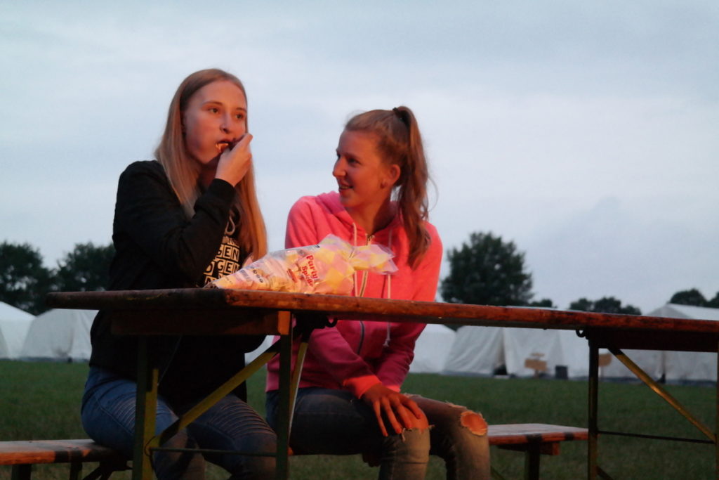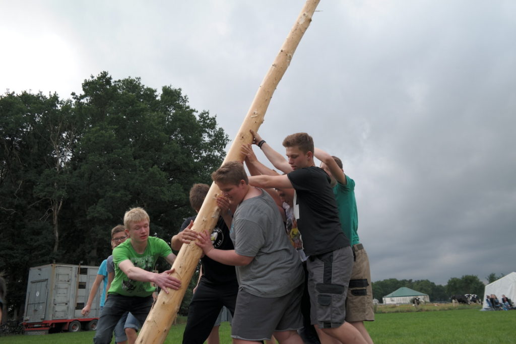 Nachdem die starken Jungs der neunten Klasse den riesigen Wimpelmast aufgestellt hatten, wurden alle Kinder von der Lagerleitung in Gestalt von Klaus Möller und Julia Bruns begrüßt. Für das Abendprogramm mit der traditionellen Lagerrunde hatten die Gruppenleiter viele verschiedene Spiele vorbereitet, wie etwa den absoluten Klassiker „Auf den Tisch des Hauses“.