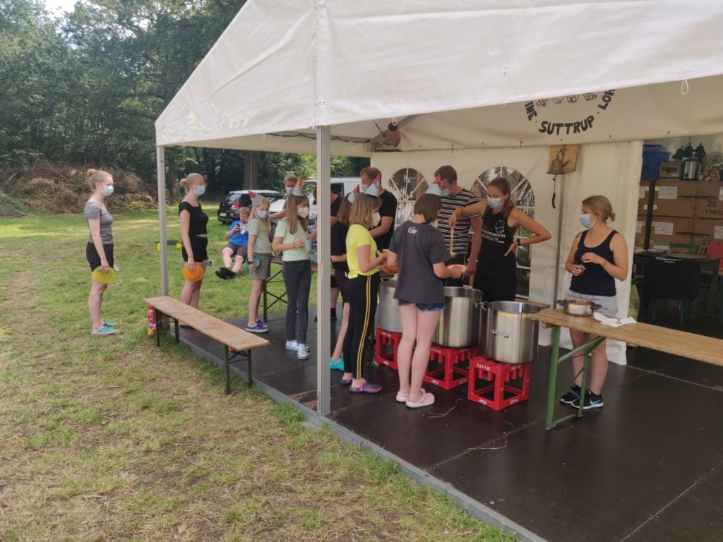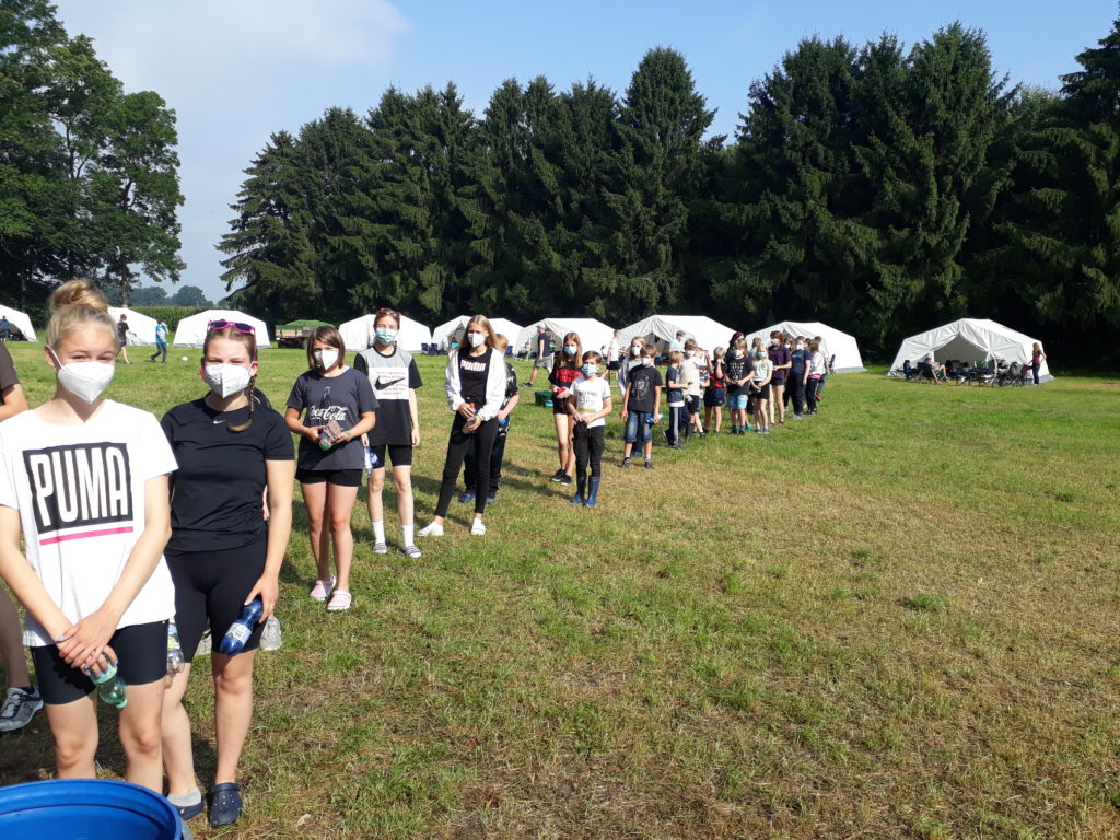 Am Mittwoch hieß es wieder: „Alle Kinder bereit machen zum Corona-Test!“ Die Malteser kamen erneut und testeten wieder ohne Ausnahme das gesamte Lager. Wenig später kam die gute Nachricht: Alle negativ! Nun konnten die Maßnahmen etwas gelockert werden und die Gruppen durften sich mischen. Ab dann trugen nur noch das Küchenteam und die Gruppenleiter eine Maske. Alles genau so, wie es das extra für das diesjährige Zeltlager erstellte und vom Gesundheitsamt geprüfte und genehmigte Hygienekonzept vorsah.