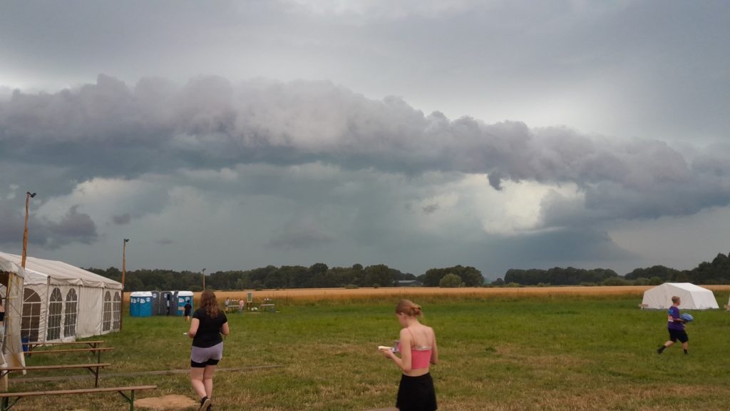 Nachdem der hitzige Sonntag dann mit einem stürmischen Unwetter endete, durften wir uns erst einmal einen Überblick verschaffen, um zu schauen, wie viele Klamotten wirklich nass geworden waren. Da eigentlich nur einige Schlafsäcke nass geworden waren, haben wir uns von einigen Thuiner Familien Decken liefern lassen, sodass jeder in der Nacht gut und trocken schlafen konnte.
